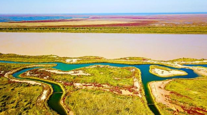 图为山东黄河三角洲国家级自然保护区景色(无人机照片)。新华社记者郭绪雷 摄